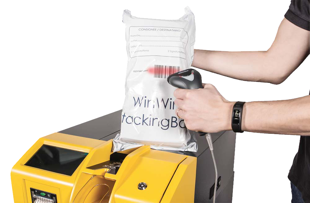 Bankovci se odlagajo v vrečo za shranjevanje in odvoz gotovine s kapacitedo do 4.000 bankovcev, v plastični samozaporni vreči ali 10.000 bankovcev v platneni vreči. Sistem omogoča vrečo z RFID tehnologijo, ki omogoča kontrolo vseh operacij, ki se opravljajo z vrečo.